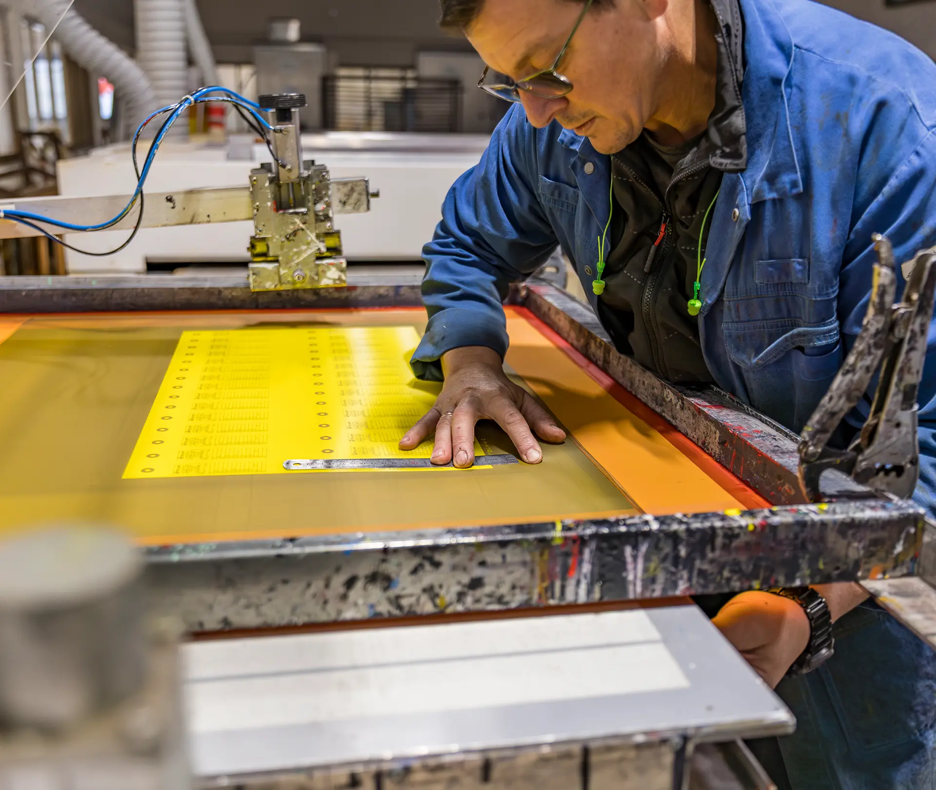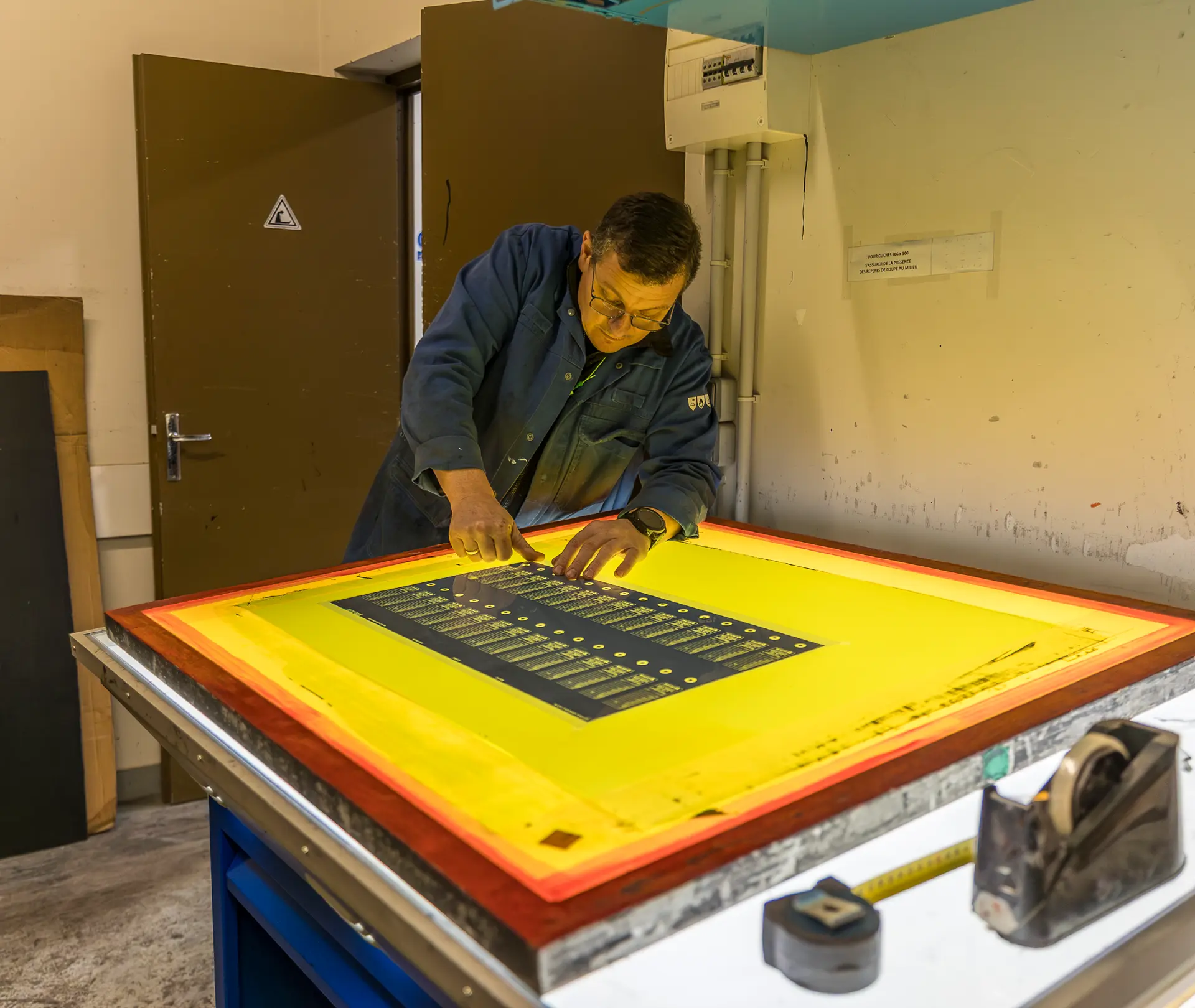 La sérigraphie nécessite un écran de sérigraphie, sorte de pochoirs avec des pixels, qui laissera passer l’encre à certains endroits pour qu’elle se dépose sur votre support.