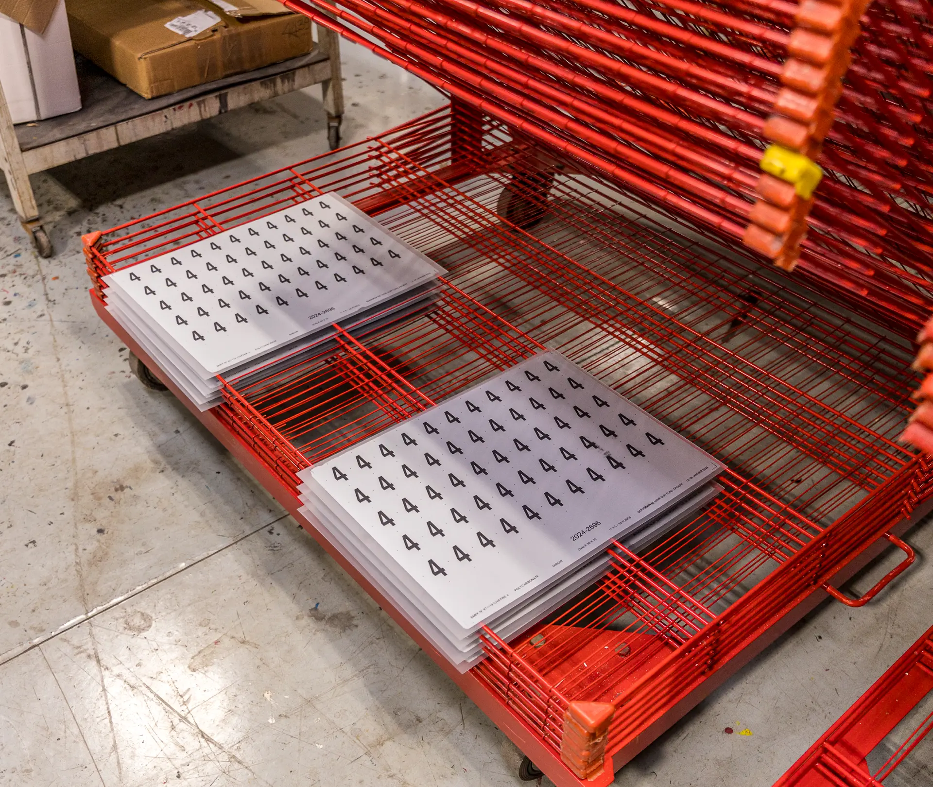 En sérigraphie, plusieurs couleurs = plusieurs jours puisqu’il y a des temps de séchage entre chaque couleur, et que nos encres sont rarement UV (qui ont un système de séchage plus rapide), car elles sont moins résistantes que celles que nous avons sélectionnées. Nous saurons en revanche placer votre production en priorité si vous avez une urgence!